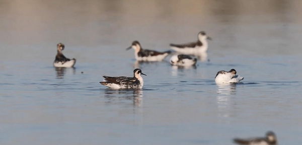 ????近日,有鳥類攝影愛好者在南海新區濕地公園拍攝到上百只紅頸瓣蹼鷸在水面旋轉覓食。