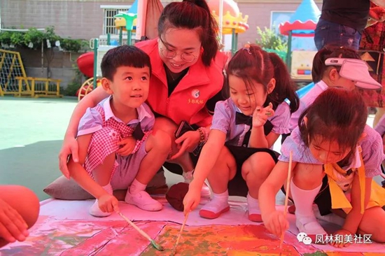 ????畫蛋糕,畫蠟燭,畫旗桿,你畫國旗、我畫五角星,祖國祖國我們愛你……”耳邊是孩子們之間的交流協(xié)作和充滿童趣的哼唱,長卷旁都洋溢著孩子們陽光的笑臉。退役軍人李大叔說:“不忘初心,牢記使命,雖然已經(jīng)退伍多年,但是參加社區(qū)合和魂退役士兵志愿隊,讓我覺著很充實,退伍不褪色永遠(yuǎn)跟黨走。看著孩子們笑魘如花的小臉,這不正是一朵朵盛開著祖國未來的希望嗎!也很欣慰。”繪畫結(jié)束后小朋友把提前畫好的五十六個民族放在天安門旁邊。瞧,鮮艷的五星紅旗飄揚在祖國的上空,五十六個民族團結(jié)有愛一家親。