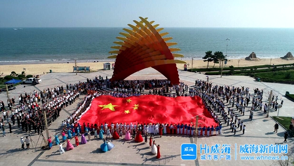 共唱愛國(guó)歌現(xiàn)場(chǎng)。威海晚報(bào)實(shí)習(xí)生 賽慧琳 攝