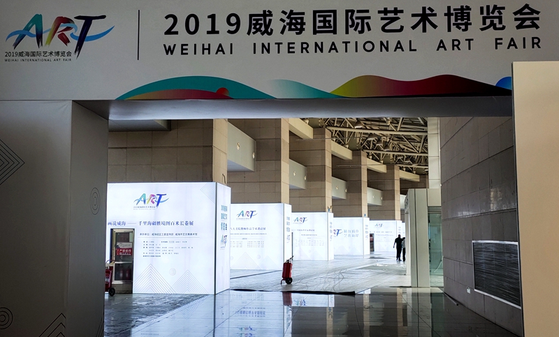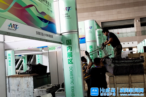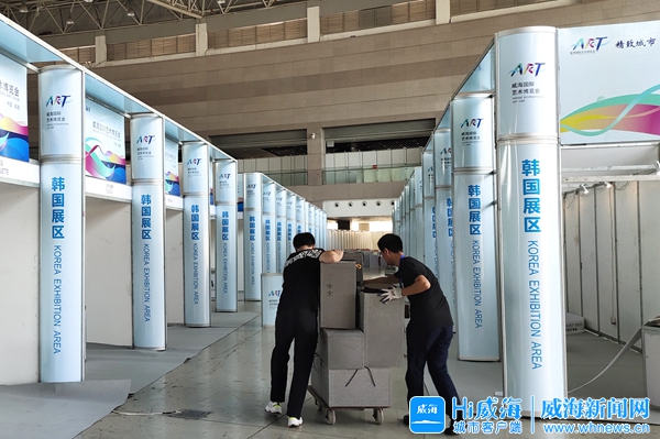 ????17日,位于威海國際展覽中心的2019威海國際藝術博覽會主會場進入布展階段。