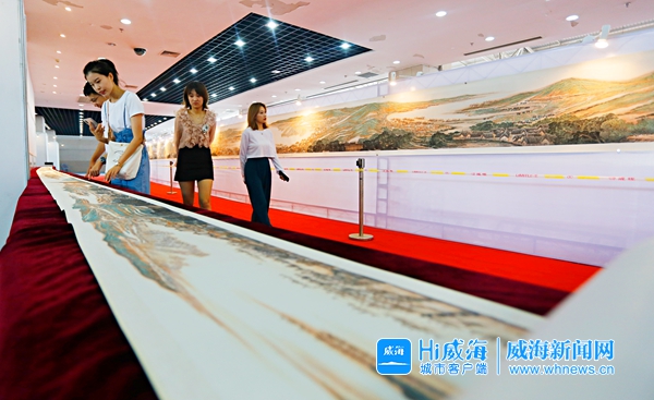 “威海的人文歷史非常久遠,最早能考證到新石器時期的文物,所以我在題文中寫道:‘悠哉威海,其源渺矣。昔者堯命,羲仲宅隅’,把威海更加廣闊的人文歷史展現出來?!遍L卷題文作者柏舟說。