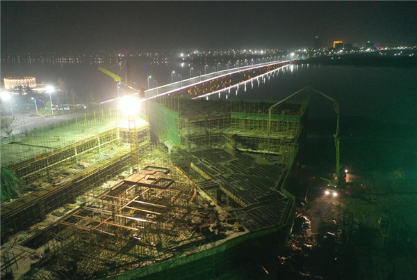 在南海新區的各個建設現場,并沒有因為夜幕降臨而停一停、歇一歇,反而是秉燭夜戰,只爭朝夕。芭蕾雨·奧特萊斯、融創國際生態健康城、市民文化中心等一批項目建設現場,每天天色黑沉時,工地上依舊燈火通明,忙碌作業。