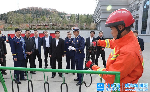 在威海市應急救援支隊,張海波現場查看了應急救援、通訊指揮、裝備保障等專業設備,觀看了消防人員的技能演示,參觀了正在建設的威海市消防支隊指揮中心,詳細了解消防應急救援隊伍的建設、訓練情況。張海波強調,要盡快適應消防應急救援體制改革變化,立足當前、放眼長遠,在做好消防工作的基礎上,進一步強化面對洪澇、森林火災等多種災害的應對能力,提升隊伍信息化、智慧化水平,打造一支全天候、全領域、全方位的消防應急救援隊伍。