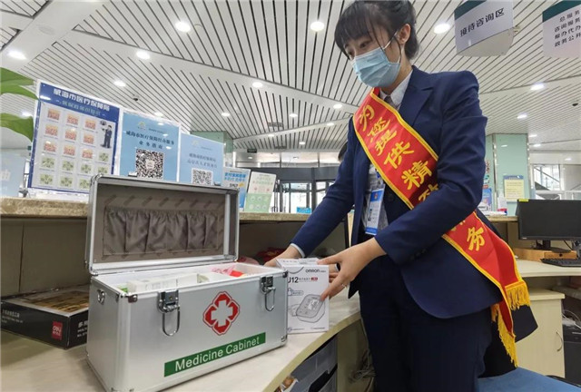 ??????為了改善老年人的辦事體驗,社保辦事大廳內,配備了軟墊座椅、輪椅、急救箱、老花鏡、雨傘、飲水機、充電樁等便民物品和服務設施,還提供免費打印、復印、EMS郵寄服務。