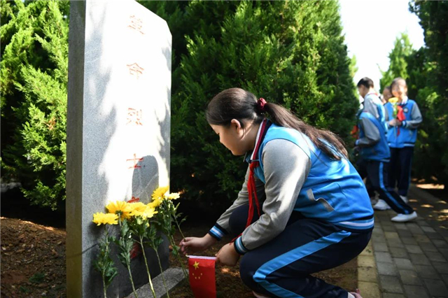 ??????蓮花山烈士陵園內(nèi),松柏蒼翠、莊嚴肅穆,烈士紀念碑巍然聳立。上午9時,在雄壯的國歌聲中,公祭儀式正式開始。烈士紀念碑前,全體人員靜穆肅立,向為中國人民解放事業(yè)和新中國革命、建設事業(yè)英勇獻身的烈士鞠躬默哀。默哀后,手持鮮花的少先隊員代表高唱《我們是共產(chǎn)主義接班人》。