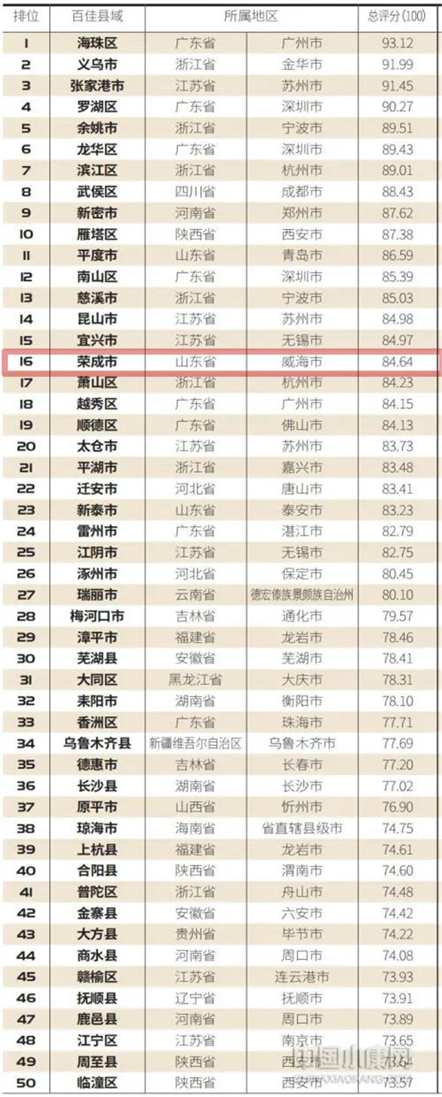 全國第16!榮成登上“2020中國縣域人口流入百強榜”