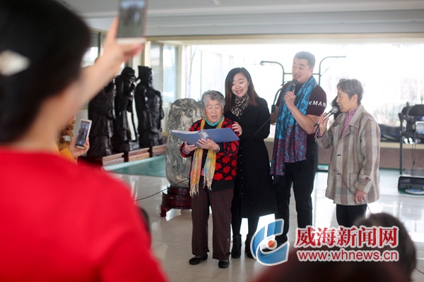 ??????“過年好啊!”“您也好!”當日上午9點,天氣晴暖,威海市文化志愿者協會會長楊紫一早來到東發老年公寓門口,熱情地迎接前來開展公益演出的志愿者們。