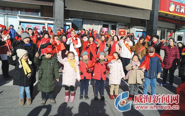????威海新聞網(wǎng)1月23日訊 (記者 沈道遠 文 王曉 圖) “我和我的祖國,一刻也不能分割,無論我走到哪里,都流出一首贊歌……”1月21日上午,環(huán)翠區(qū)竹島街道轄區(qū)近百名居民和商戶代表,用歌曲“快閃”的形式祝福祖國繁榮昌盛,預(yù)祝市民朋友新春快樂。