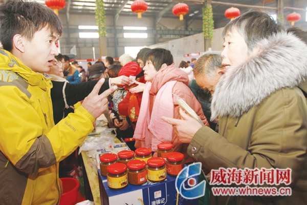 ????“我們帶來60多種半成品食品,因?yàn)榉奖闶∈拢苁軞g迎。”煙臺欽鼎食品總經(jīng)理苗宏介紹,借助年貨節(jié)旺盛的人氣,他的生意格外地火。