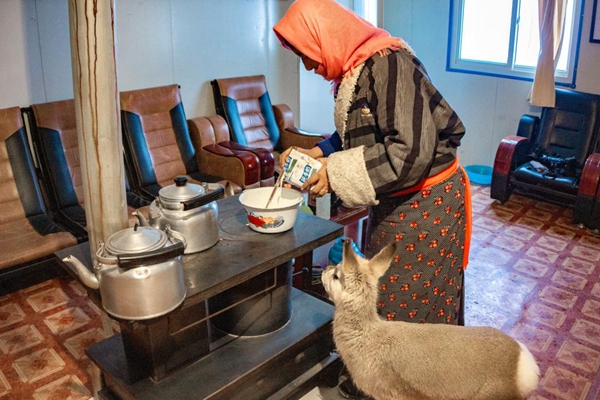 ????德措吉在家中為藏原羚拌食。 宋林繼攝