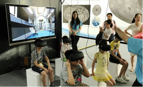 同類項目還有“建設(shè)我的太空基地”。透過VR眼鏡,我們可以游覽小朋友們想象中的太空基地。另外,還有很多互動小游戲,如:遙測小火箭、航天員找不同、太空清道夫等,供小朋友們學習娛樂。