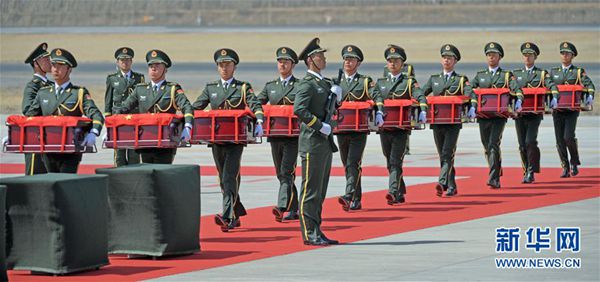 ????儀式現(xiàn)場(chǎng)氣氛莊重,烈士遺骸的棺槨覆蓋著鮮紅的中華人民共和國(guó)國(guó)旗,到場(chǎng)迎接的解放軍官兵軍容齊整、莊嚴(yán)肅立,現(xiàn)場(chǎng)全體人員向烈士遺骸三鞠躬。