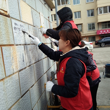 志愿者們在清理小廣告 叢莉 攝