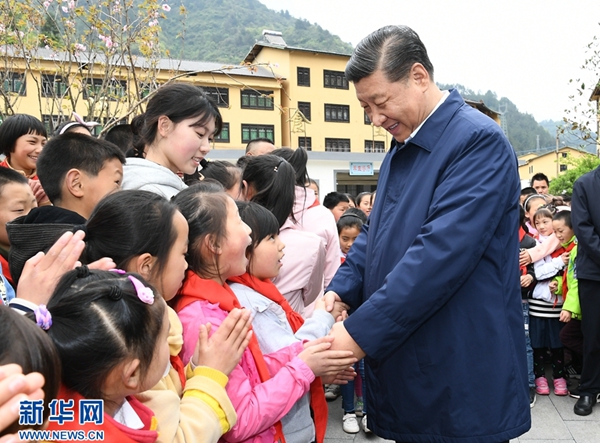 ????山城四月,春風和煦,山水透綠,一派生機勃勃。4月15日,習近平在中共中央政治局委員、重慶市委書記陳敏爾和市長唐良智陪同下,深入石柱土家族自治縣的學校、農村,實地了解脫貧攻堅工作情況。