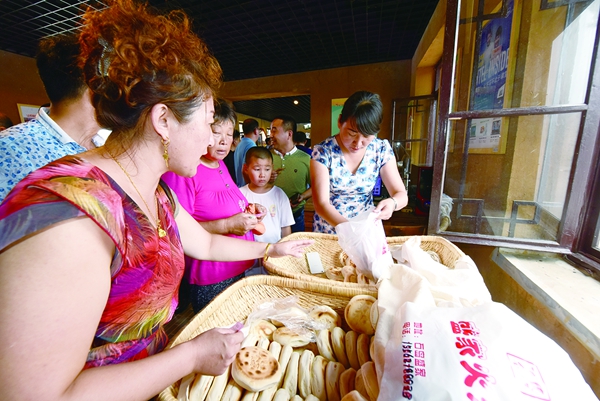 在盛家火燒產業的帶動下,盛家村拓寬經營思路,將結婚用的喜餅和膠東特色大饅頭也納入經營范圍,同樣在火燒加工車間里加工制作,不僅豐富了產品的類別,還形成了典型的面食系列文化產品。(威海晚報記者 王志強 沈道遠 文 楊志禮 圖)