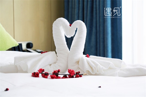 推開門,房間給了我一個很大的驚喜,一對優雅的“天鵝”,兩張天鵝湖的明信片,還有一張愛心便簽出現在眼前,一瞬間就讓我覺得特別溫暖。