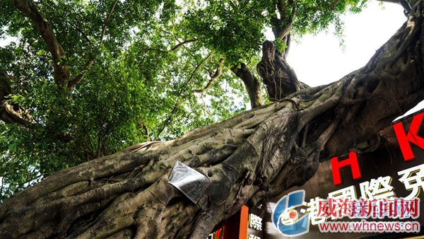 5月18日在中英街拍攝的扎根在深圳、樹蔭在香港的榕樹。 新華社記者 劉潔 攝