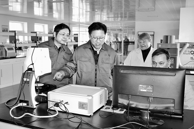 ????鶴崗華升石墨股份有限公司的專家們在檢測石墨烯質量。資料圖片