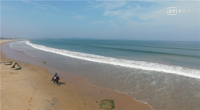 男女主在沙灘上奔馳騎馬,在落日余暉里相依看海,在白色風車下漫步,不少網友投來羨慕的眼神:這座城市也太適合談戀愛了吧。