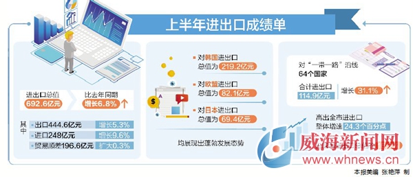 上半年進(jìn)出口總值692.6億元