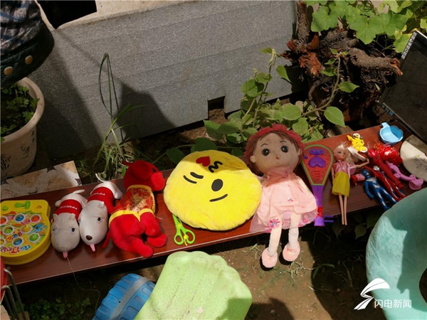 (居民晾曬的布娃娃一字排開)