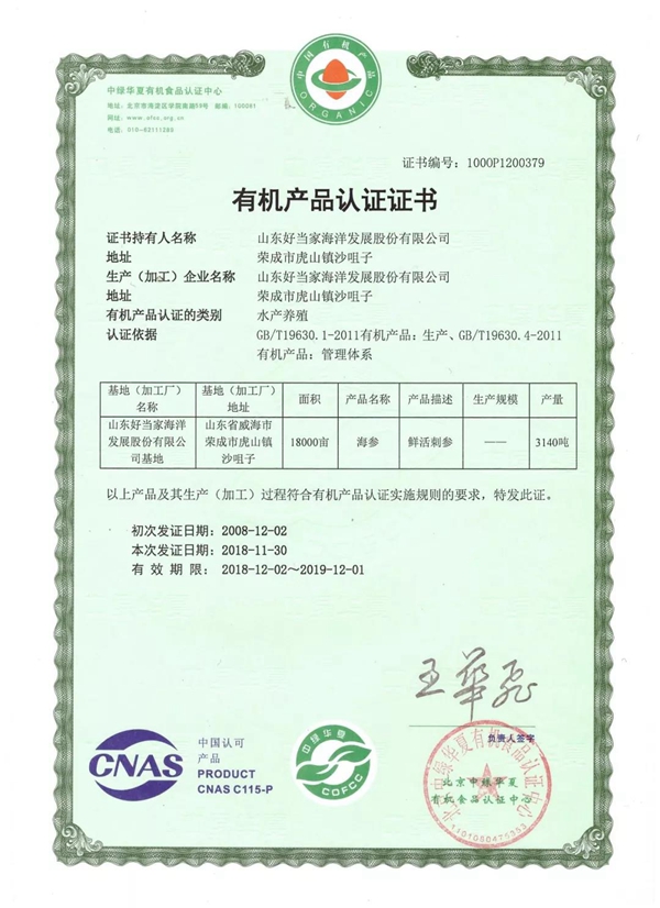 ????2019年好當(dāng)家有機刺參鮮參開捕啦!