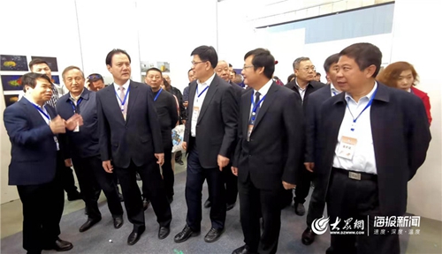 11月1日 ,中國文聯黨組成員、副主席、書記處書記李前光(左三)、山東省文聯黨組書記、副主席王世農(右三)等參觀展覽。