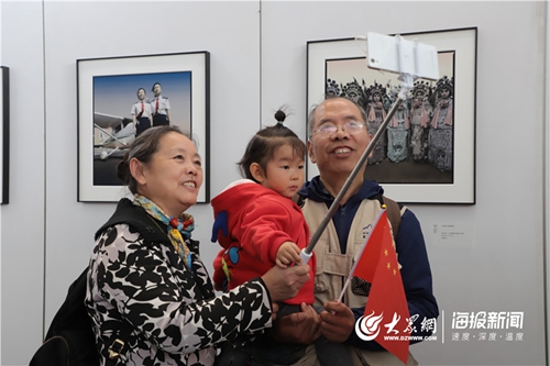 11月1日 ,參展觀眾在展覽作品前合影留念。