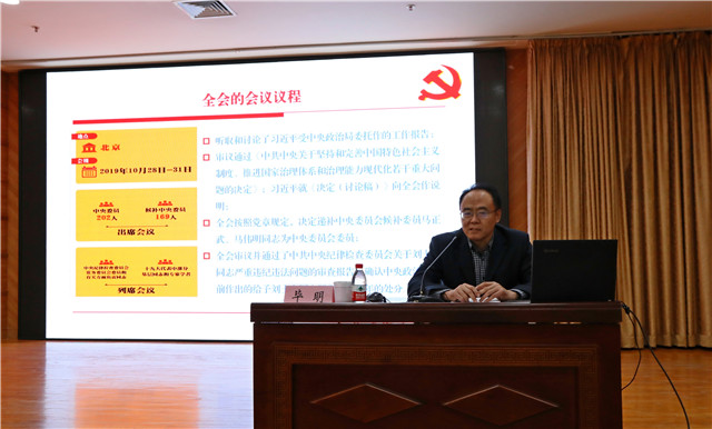 時(shí)間撥回兩個(gè)小時(shí)前。上午9點(diǎn),市委黨校行政學(xué)教研部副教授畢明帶著自己對(duì)黨的十九屆四中全會(huì)精神的理解走上講臺(tái)。剛一開場(chǎng),畢明就點(diǎn)明了宣講的主題:“黨的十九屆四中全會(huì)第一次提出中國(guó)特色社會(huì)主義制度和國(guó)家治理體系具有13個(gè)方面的顯著優(yōu)勢(shì),這些顯著優(yōu)勢(shì)是‘中國(guó)之治’的制度密碼所在,是堅(jiān)定‘四個(gè)自信’的基本依據(jù)所在,是當(dāng)代中國(guó)發(fā)展進(jìn)步的根本保障所在。”
