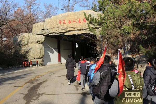 ????從華夏第一牌樓到水上文化長廊,同學們不僅見識到了昔日礦坑變成具有中國傳統建筑之美的、明清古典建筑群的水上文化長廊的巨變,并跟隨國家領導人當年的足跡,探尋華夏城從荒山變成名勝的嬗變之路。隊員們認真地聽研學導游老師講解,驚嘆華夏城創建者的非凡意志力。