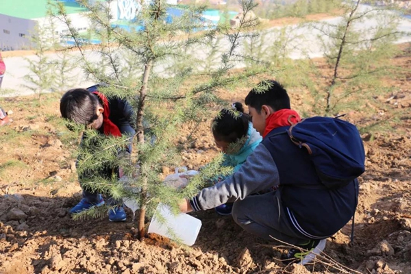 ????在華夏城景區中心地帶,同學們來到未來的萌寵樂園,為新栽小樹苗澆下生命的源泉。同學們分成四隊為小樹澆水。二組的趙思睿同學說,“每個人都要喝水,小樹也要喝水才能活。我們為小樹澆上水,可以幫助它們健康成長。”