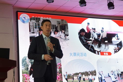 ?? 王波彬校長就學校情況和高考情況做主題講話。零距離的接觸、全方位的了解,一個設施一流、功能齊全、環(huán)境優(yōu)雅、校風純正的乳山二中立體化呈現(xiàn)于同學們面前,“勵志修身 追求卓越”的校訓逐漸進入孩子們的內(nèi)心。