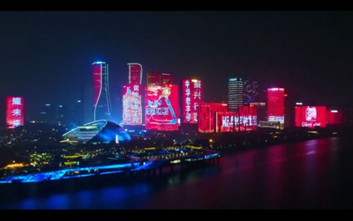 12月31日晚,杭州錢塘江畔,“品牌之光耀未來”燈光秀閃耀登場。