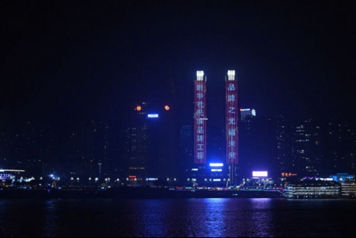 12月31日晚,“品牌之光耀未來”燈光秀在重慶長江畔亮相。