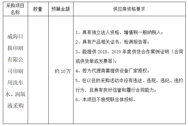 ??? 一、項目名稱:威海日報印刷有限公司印刷用洗車水、潤版液采購