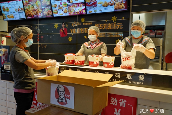 1月27日起,武漢肯德基和必勝客免費為武漢重點醫院醫護人員供餐