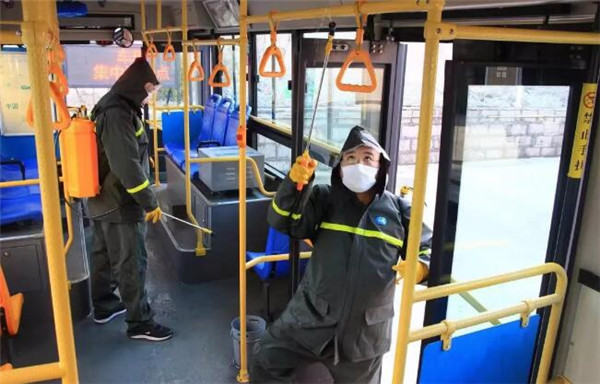 運(yùn)輸場所和工具消毒:對機(jī)場、鐵路、公路、港口來威人員進(jìn)行100%體溫檢測的同時(shí),按照衛(wèi)生防疫標(biāo)準(zhǔn),加強(qiáng)對營運(yùn)客車、公交車輛、公交場站、客運(yùn)場站的清潔、通風(fēng)和消毒工作,防止由運(yùn)輸工具造成的疫情擴(kuò)散。積極督導(dǎo)相關(guān)單位加強(qiáng)對旅客和本系統(tǒng)員工的新型冠狀病毒感染的肺炎防控知識(shí)宣傳教育,增強(qiáng)防控意識(shí)和能力。