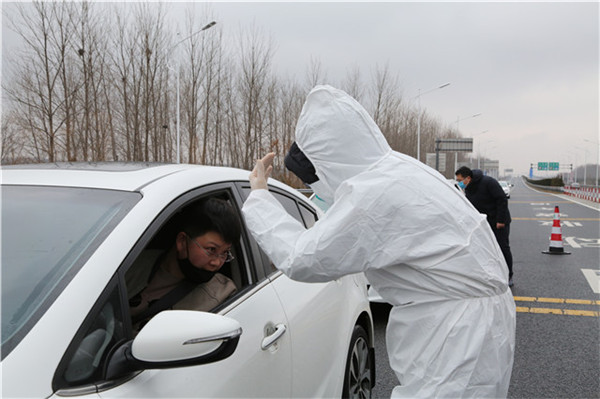 “有你們在,我們就更放心了。”從濟寧返鄉的市民劉女士在接受檢查后,不由得向工作人員豎起了大拇指,“你們可是沖在最前面的,也要注意安全呀。”