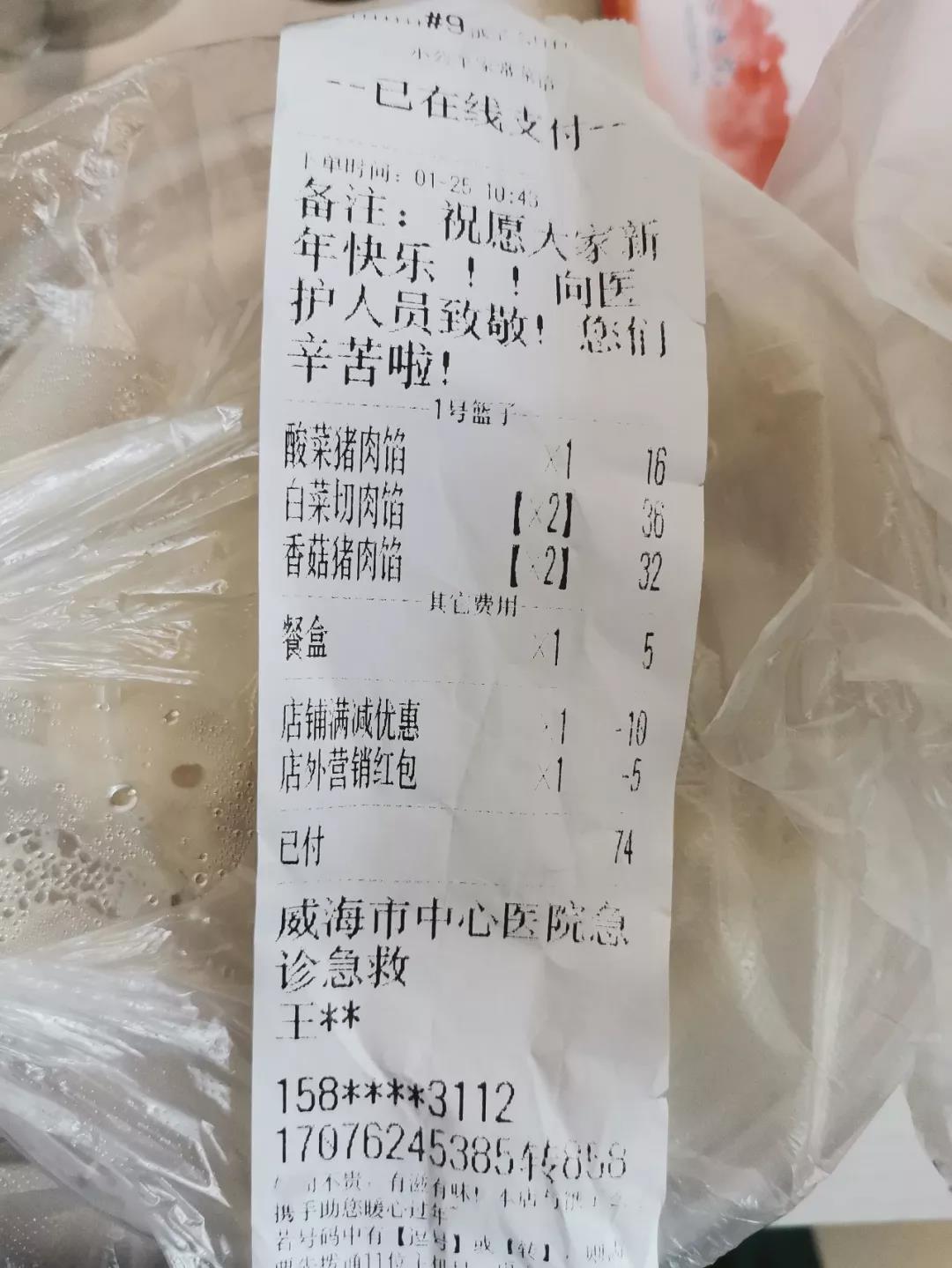 ????今天中午,急診科收到一份特殊的外賣,市民“王先生”通過外賣平臺,為醫護人員送來熱氣騰騰的餃子和新春的問候。雖然奮戰在抗擊疫情的前沿陣地,但這份心意讓醫護人員心里都暖暖的。