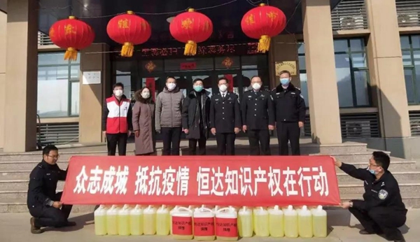 山東恒達知識產權股份有限公司捐贈價值20萬元的消毒水。