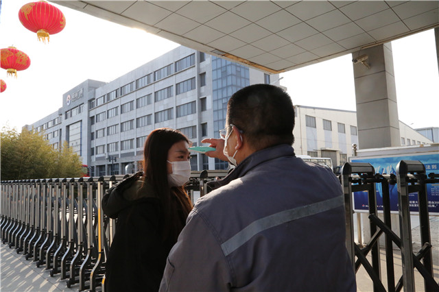 ??????在公司門衛室,記者看到,凡是進出公司的人員,必須佩戴口罩,同時都需經過嚴格的體溫檢測合格后,才可進入。