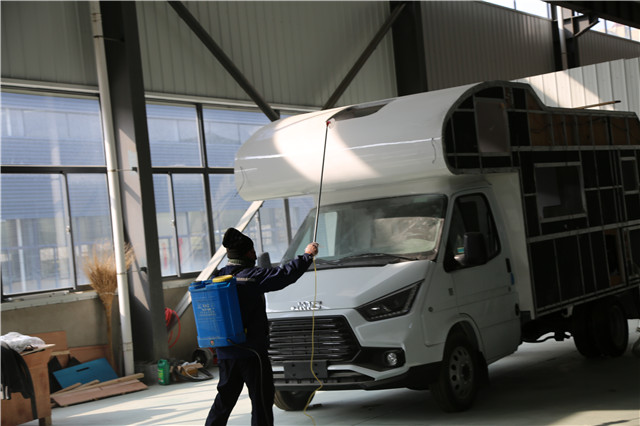 ??????2月6日上午,位于臨港區的威海廣泰科技開發有限公司的裝配車間內,十余名員工穿著防護服,戴著口罩、手套在各自的工位上緊張忙碌著,一旁“全副武裝”的工作人員正為車間角角落落殺菌消毒。