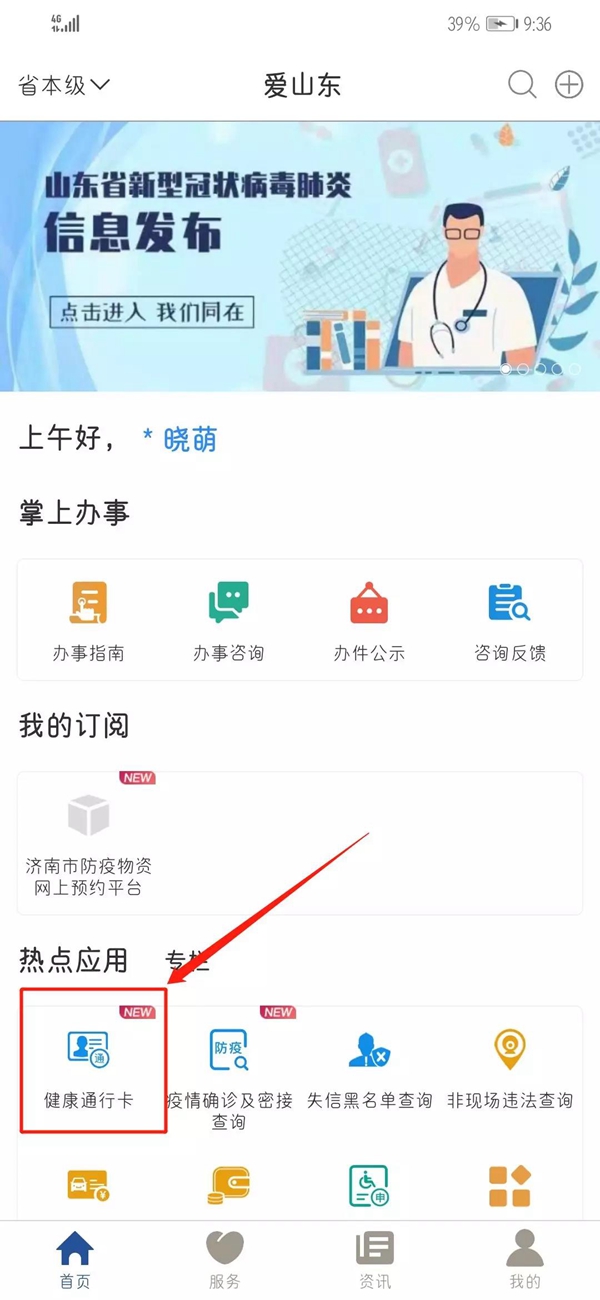 ??????打開“愛山東”,無論您在山東的哪個角落,都可以在首頁找到“健康通行卡”入口。