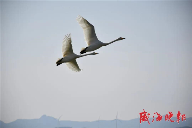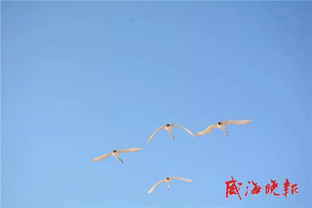 ??????據(jù)了解,通常在每年的10月底,隨著冷空氣南下,在西伯利亞貝加爾湖等地棲息的大天鵝就會飛到榮成越冬,翌年的2月中下旬至3月中旬,大天鵝們開始向北方的夏季棲息地回遷。