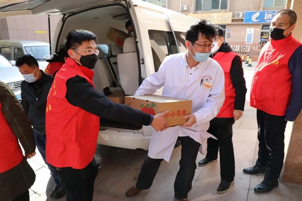 ??????榮成市中醫(yī)院是新冠肺炎定點醫(yī)療單位之一,醫(yī)護人員的生命健康牽動著榮成農(nóng)商銀行青年志愿者的心。黨有號召,團有行動,3月4日,該行青年志愿者采購20箱蘋果,組織慰問一線醫(yī)護人員?!胺浅8兄x你們!你們同樣是一線的戰(zhàn)士,在這個緊要關(guān)頭,你們同樣堅守在金融服務(wù)一線,為疫情防控提供強有力的支撐。真的體會到有黨有組織,我們一直都是一家人。”中醫(yī)院財務(wù)總監(jiān)如是說。