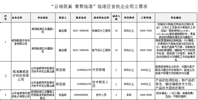 如果想了解更多的臨港區崗位需求以及投遞簡歷請加入威海臨港區青鳥驛站qq群860364897和“云端筑巢 青鳥聚威”威海大學生就業促進行動群1003139533。