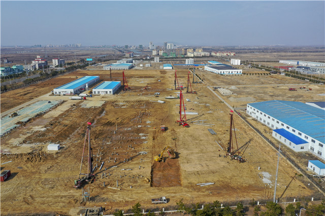 ??????3月9日,來到恒嘉輝半導體產業園項目建設現場,處處一片火熱施工的景象:一臺臺樁機分布在各處轟鳴作業,工程車和裝載叉車載著管樁材料在施工現場穿梭不歇,工人們各司其職加快施工。“我們現在每天都有20多車管樁材料進場,8臺樁機同時作業,每天從早上6:30一直干到晚上18:00。”項目經理李忠表示,恒嘉輝半導體產業園自2月28日動工以來,只用不到10天時間,規劃建設的15個車間中已有4個完成樁基施工,“為了加快進度,我們在管委相關部門的幫助協調下,馬上再增加6臺樁機,確保項目加快建設。”