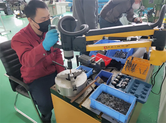 ?威海重鼎托邦智能裝備有限公司工作人員在攻螺紋
