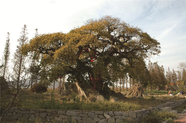 ??????萬戶村銀杏 生長于乳山市大孤山鎮萬戶村,樹齡達1200余年,是膠東最古老的一株銀杏樹。據史志記載,宋代岳飛抗金時期,曾有抗金志士藏于此樹,躲過金兵追捕。古樹附近有題字“滄海桑田千年樹,人杰地靈萬戶村”,方圓幾十里的村民敬樹如神,每逢節日或有喜事,都在此樹掛彩貼紅。