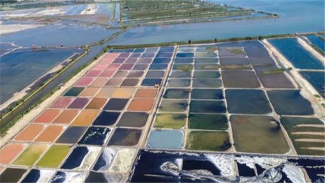 ??????在這個過程中,鹽場工人需要不斷測量鹽池的咸度,根據(jù)咸度變化不斷引入新的海水。由于咸度和蒸發(fā)結(jié)晶速度的不同,從高空俯瞰,各個鹽池分別呈現(xiàn)出赤、橙、黃、綠、青、藍(lán)、紫各種五彩斑斕的色澤,好像一塊平鋪在大地上的調(diào)色盤。(來源:威海日報)
